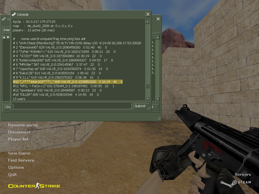 chybovou zprávu