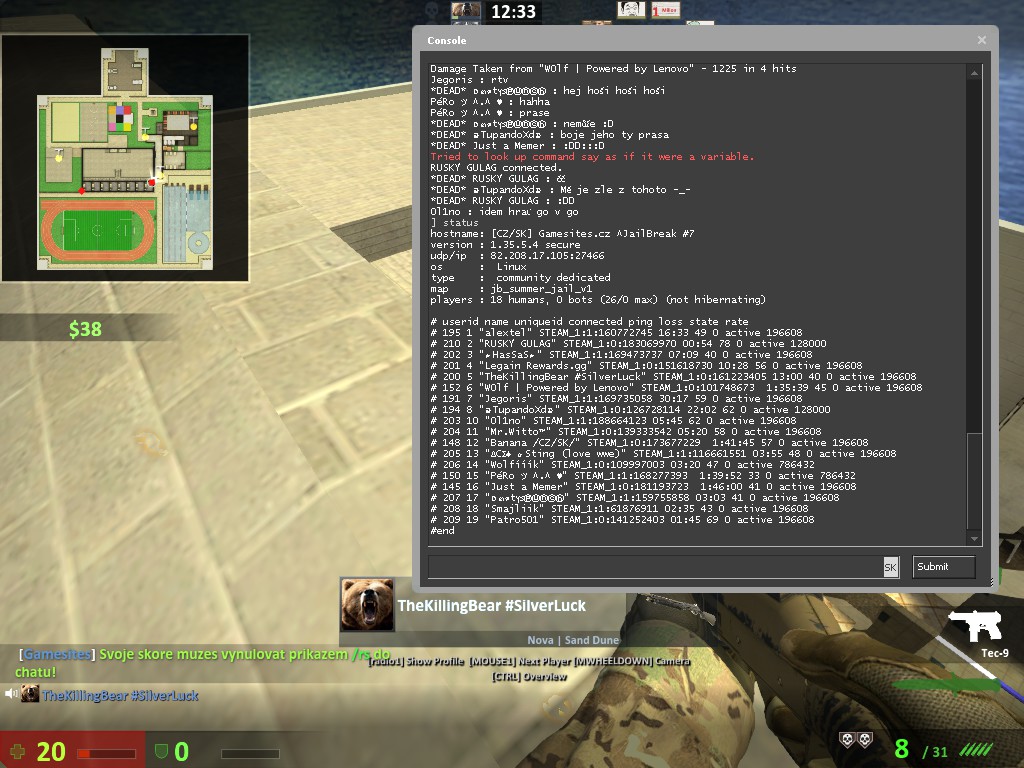 chybovou zprávu